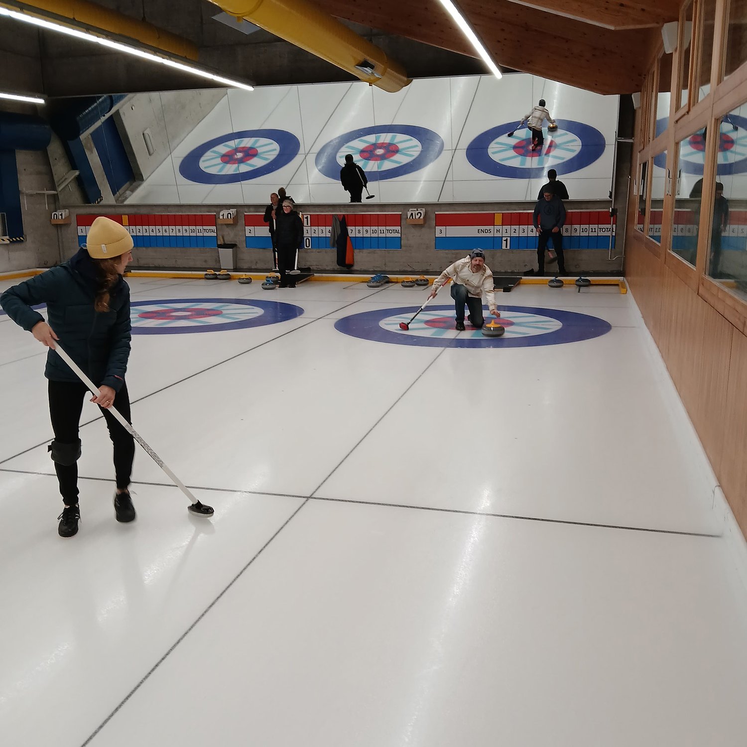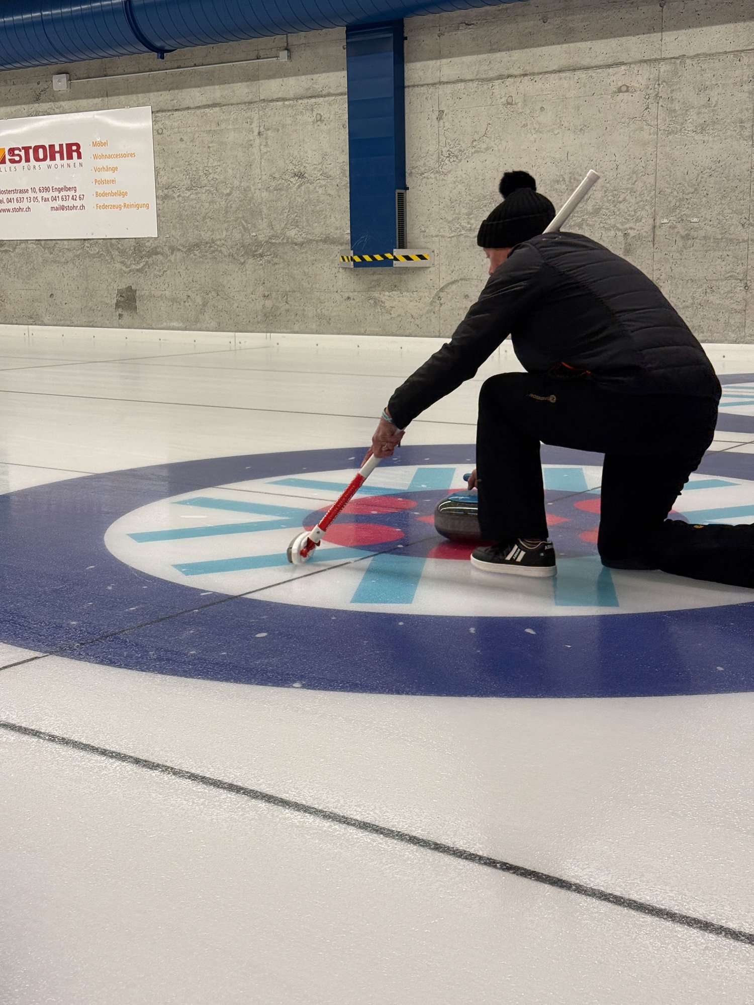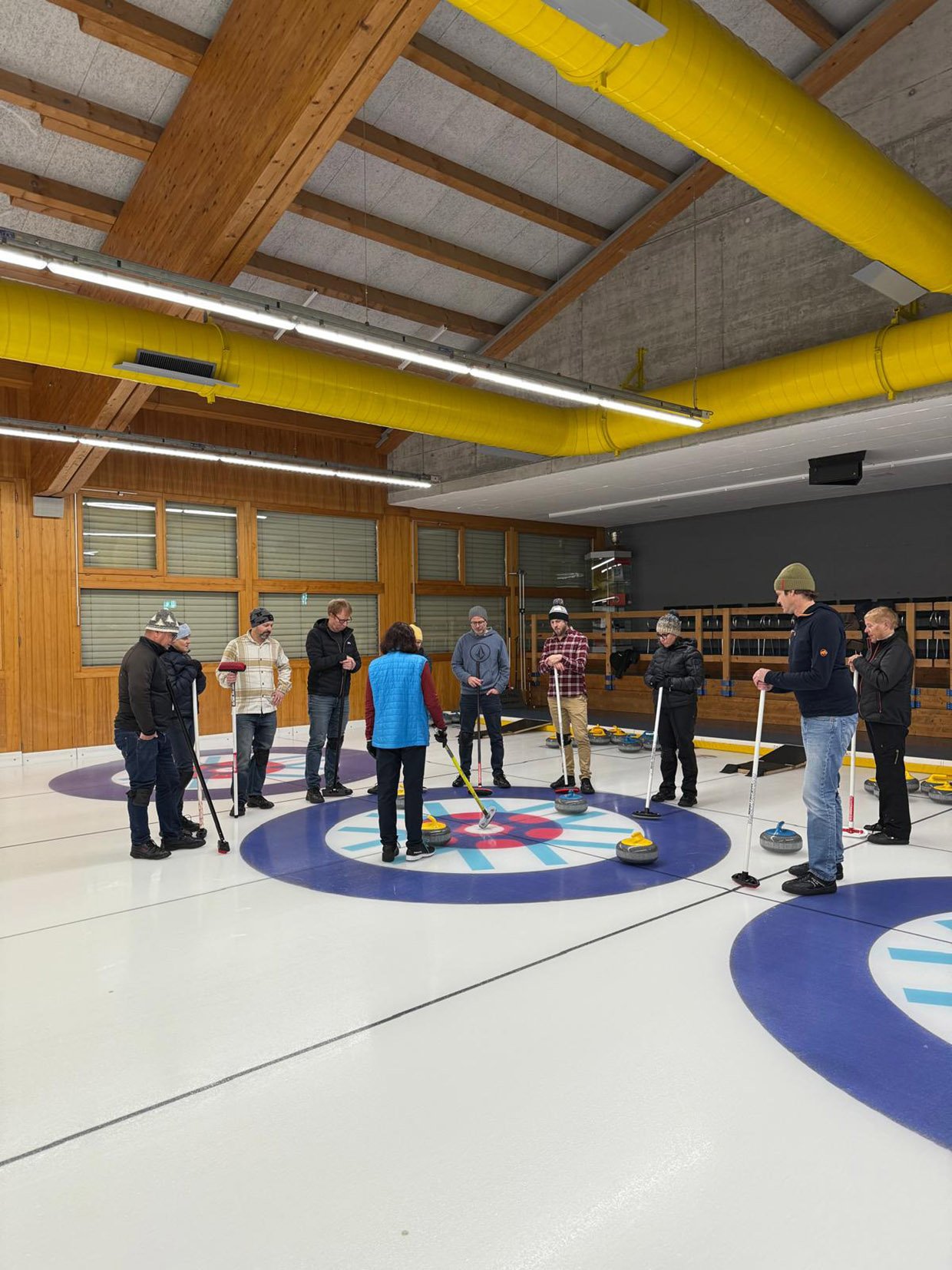 Nun aber der Reihe nach. Bei traumhaften winterlichen Bedingungen haben 11 Mitglieder des SCBK's den Weg in die Curlinghalle in Engelberg in Angriff genommen. Nach kurzer Einführung und ein paar Tipps durch die Instruktorin durften wir schon bald die ersten Steine über das Eis schiessen. Zu kurz - zu lang - viel zu kurz... gar nicht so einfach...