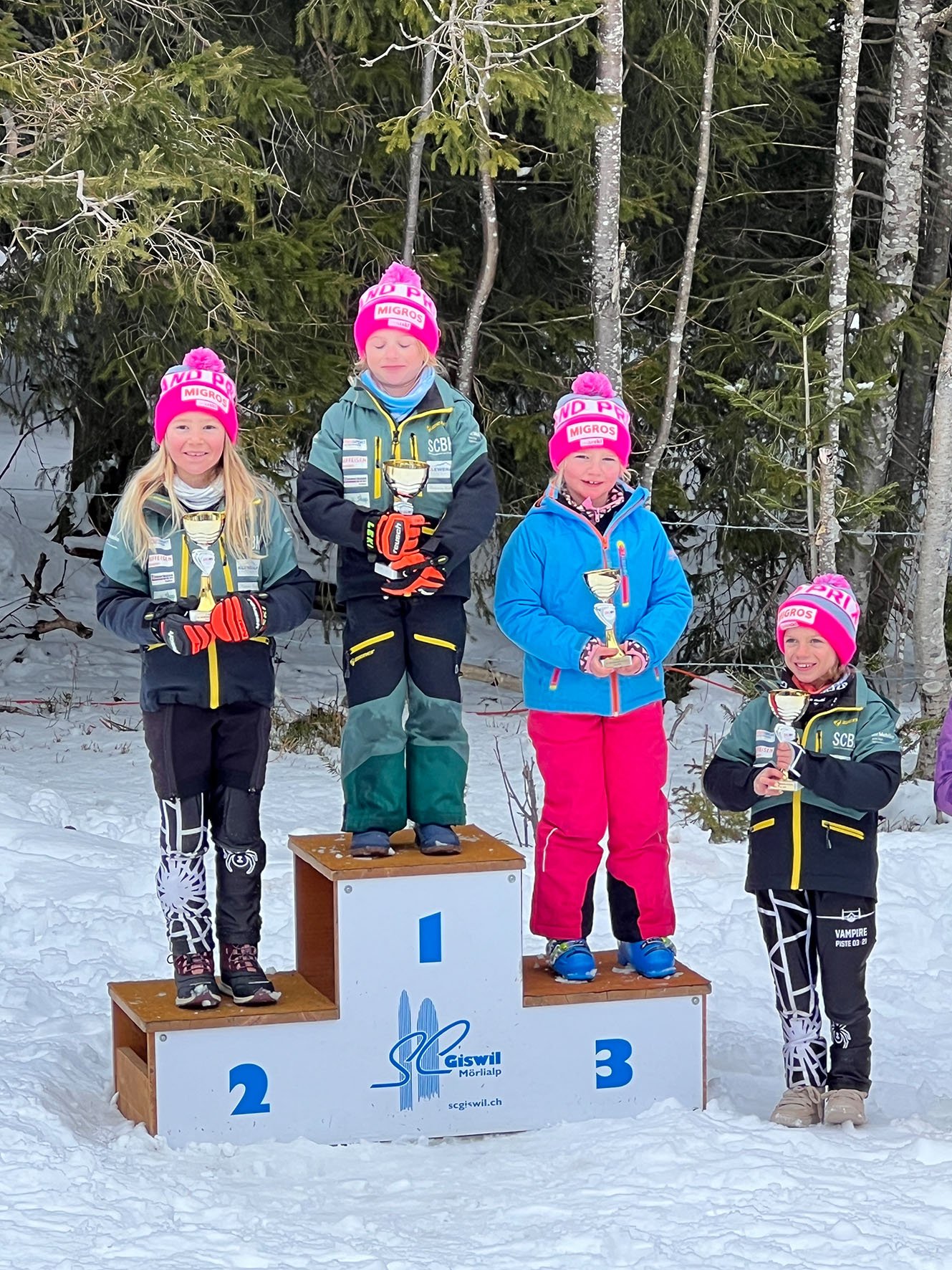 Wie bei den Ältesten haben wir auch bei den Jüngsten einen Doppelsieg verzeichnen dürfen. Ava Fischer und Huser Lia durften die obersten Podestplätze besteigen. Weiter fanden sich Remi Zimmermann (1.) Maro Sievers (2.) Ramona Zieri (2.), Franco Baumann (2.), Alessio Schmid (3.), Marie Zimmermann (3.) und Mila Huser (3. / Snowboard) wieder auf dem Podest.